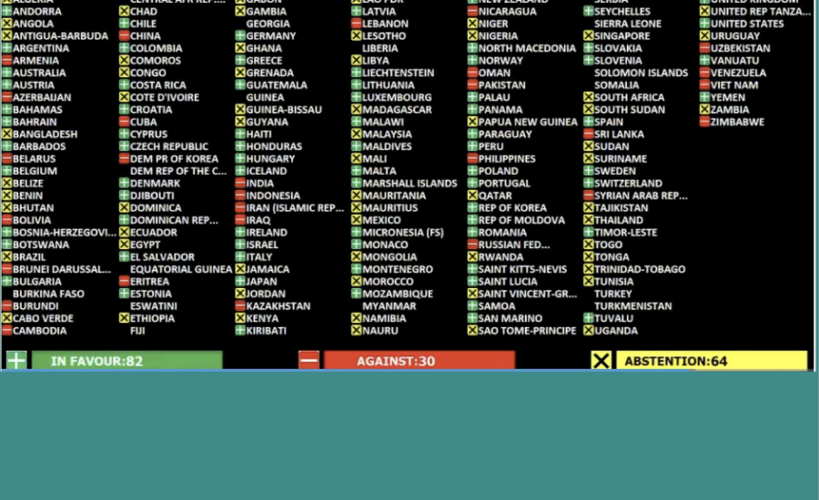 16 декабря Генассамблея ООН приняло резолюцию осуждающую нарушения прав человека в Исламской Республике Иран."ЗА" (зелёный цвет) резолюцию проголосовало 82 государства, "ПРОТИВ" (красный цвет) – 30, "ВОЗДЕРЖАЛИСЬ" (жёлтый цвет) – 67.В списке проголосовавших "ПРОТИВ"