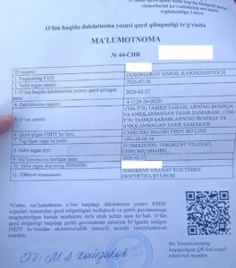 Ismoil Zhakhongirov – Death certificate