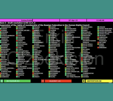 Сегодня, 07.04.2022 года, в штаб-квартире ООН в Нью-Йорке в ходе возобновленной 11-й чрезвычайной спецсессии ГА ООН проголосовала за