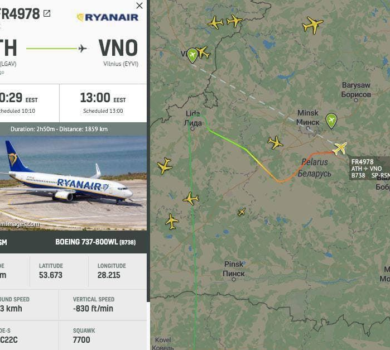 UPD: После приземления самолёта в международном аэропорту "Вильнюс", среди пассажиров рейса Афины - Вильнюс не оказалось двух белорусов