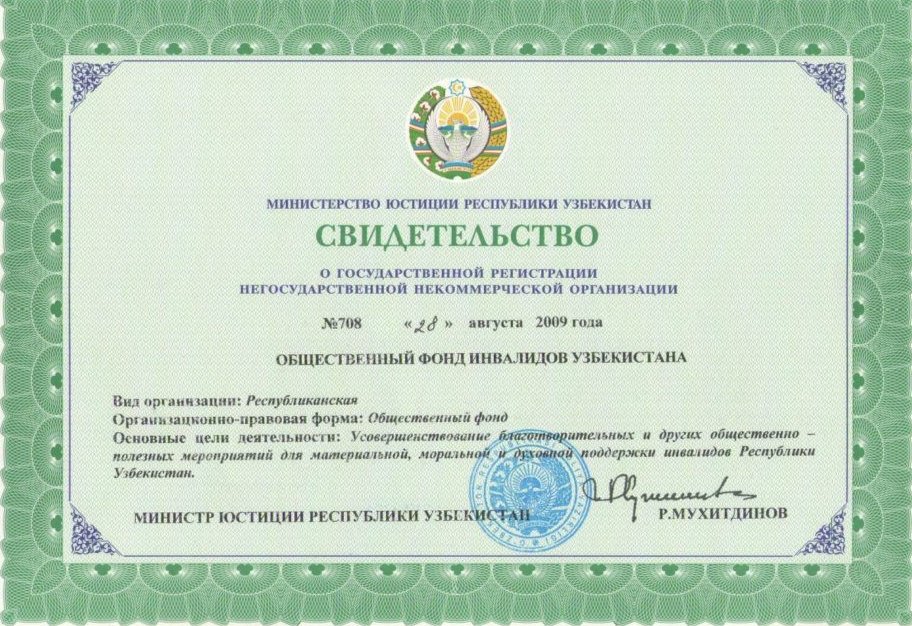 По инициативе и под непосредственным руководством Бурханова 28 августа 2009 года Министерство юстиции Республики Узбекистан зарегистрировало “Общественный фонд инвалидов Узбекистана” под номером 708.