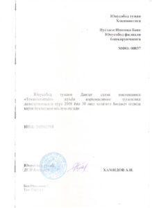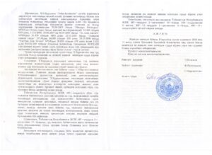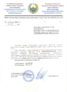 После необходимых государственных проверок Юнусабадская районная налоговая инспекция проинформировала регистрирующий орган о том, что, согласно Акту ликвидации, предприятие по состоянию на 30 июля 2008 года не имеет задолженности перед бюджетом.