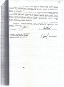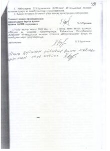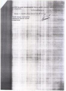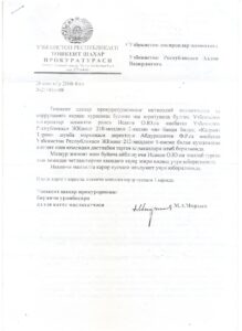 – В письме следователя говорится, что: “…против должностных лиц… возбуждено уголовное дело…”. В действительности же, уголовное дело было возбуждено только против Бурханова, к тому же не по Статье 205 часть 2 пункт “а” (Злоупотребление властью или должностными полномочиями), а по Статье 207 часть 1 (Должностная халатность).