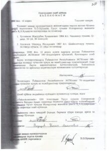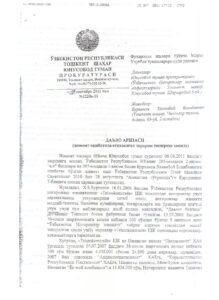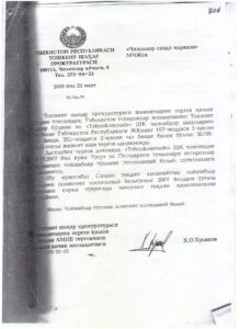 Стоит отметить, что следователь прокуратуры Ташкента Хусан Хусанов и директор ООО “Чилонзор Савдо Маркази” Ш. Саид-Газиев, написавший оценочное заключение, состоят в близких родственных связях. Ш. Саид-Газиев приходится тестем следователю Хусану Хусанову.