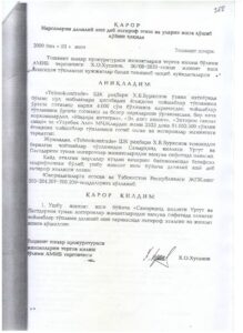Суд применил к Бурханову 45 УК РУз и постановил взыскать с него в пользу государства 92 246 000 Сум (соответствующие 20 362 000 сум “дебиторской задолжности” и “растраченным” 70 952 500 сум).