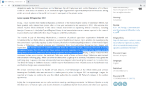 28.08.2012 г. перед началом судебного процесса, на который были приглашены наблюдатели из представителей дипломатического корпуса, журналисты, гражданские активисты и правозащитники, представитель Узбекского общества инвалидов, устроив провокацию, сорвал судебное заседание.
