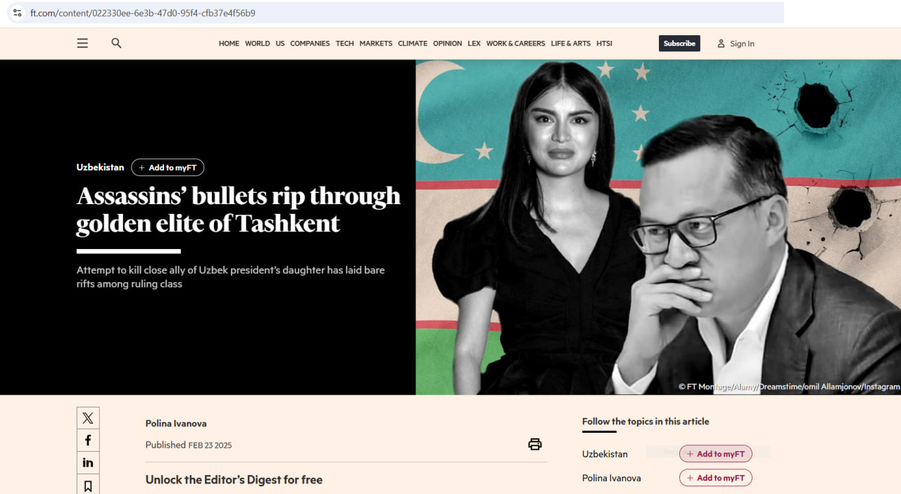Shu bilan birga, Britaniyaning Financial Times nashrida chop etilgan pullik buyurtma maqolada Komil Allamjonov suiqasd mavzusi haqida izoh berib, shunday dedi: