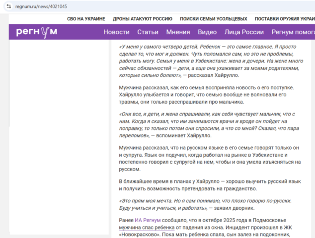 Bozorda arava tortib yurgan vaqtida, Xayrullo Ibadullayev oʻzbek jamiyatining real va shafqatsiz haqiqatiga duch keldi. 2025-yil noyabr oyida, qattiq qish arafasida, u Rossiyaga — ketma-ket toʻrt yildan beri urush holatida boʻlgan mamlakatga — ishlash uchun ketishga majbur boʻldi. Nega? Chunki “yangi Oʻzbekiston”da inson mehnati hech qanday qadriyatga ega emas: na munosib ish haqi, na ijtimoiy kafolatlar bor. Oʻzbekiston oddiy fuqarolar uchun iqtisodiy sahroga aylantirilgan, bu yerda haqiqiy ishsizlik mehnatga layoqatli aholining 30–35 foiziga yetadi, Shavkat Mirziyoyev rejimi esa xalqni faqat “gullab-yashnash” illuziyasi bilan ovutadi.