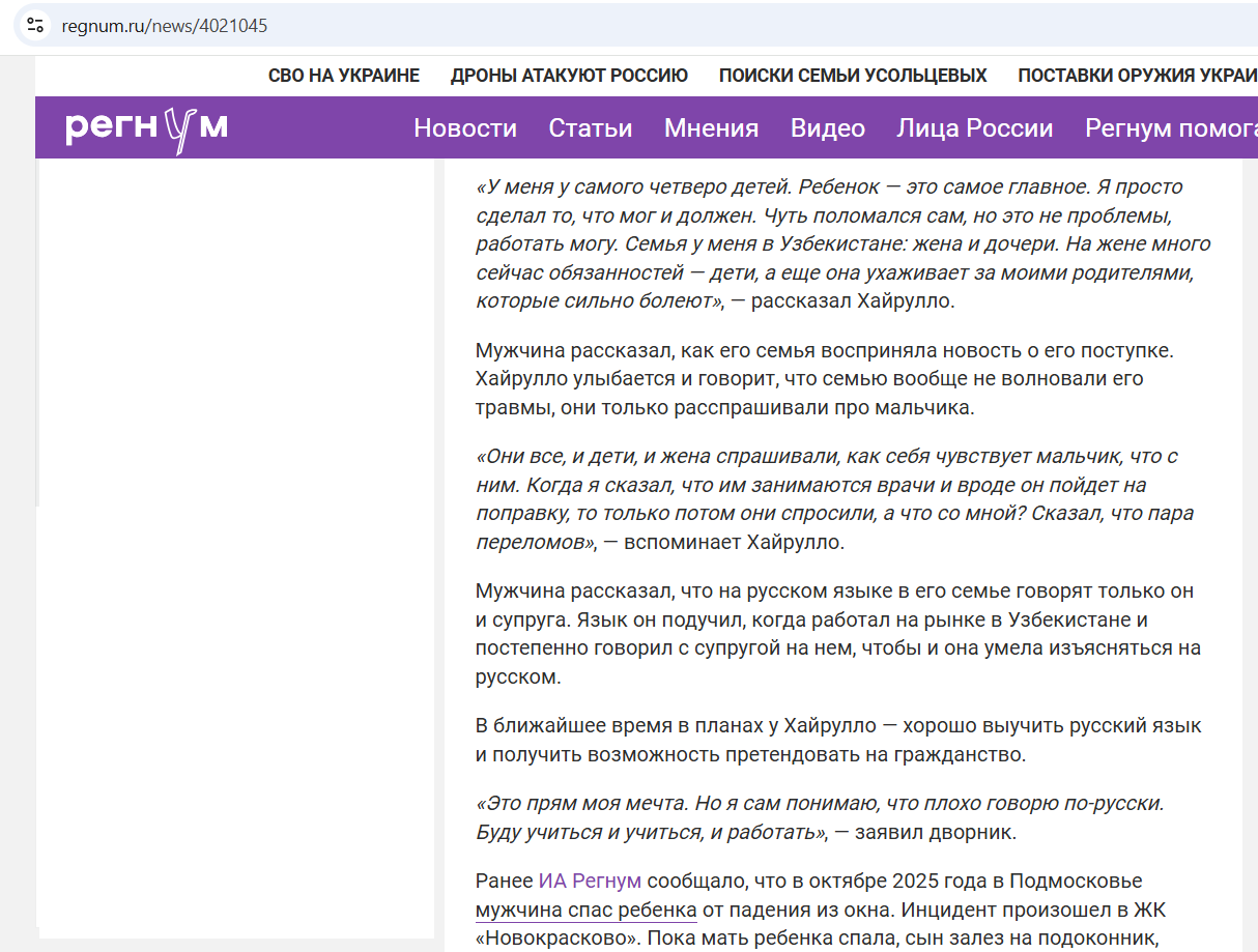 Mahalliy jurnalistlarga bergan intervyusida, hali rejimning targʻibot mashinasiga toʻliq ta’sir doirasiga kirmasdan turib, Xayrullo ochiqchasiga gapirdi: uning asosiy orzusi — Rossiya fuqaroligini olish.